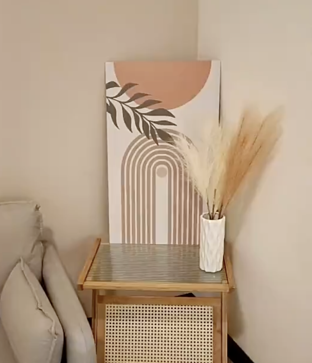 畫體本身重量不重、但拿起來是有份量的,不僅可直接斜靠牆面裝飾,搭配我們的無痕膠也可以快速黏貼上牆,省去牆面鑽洞釘鉤困擾。
